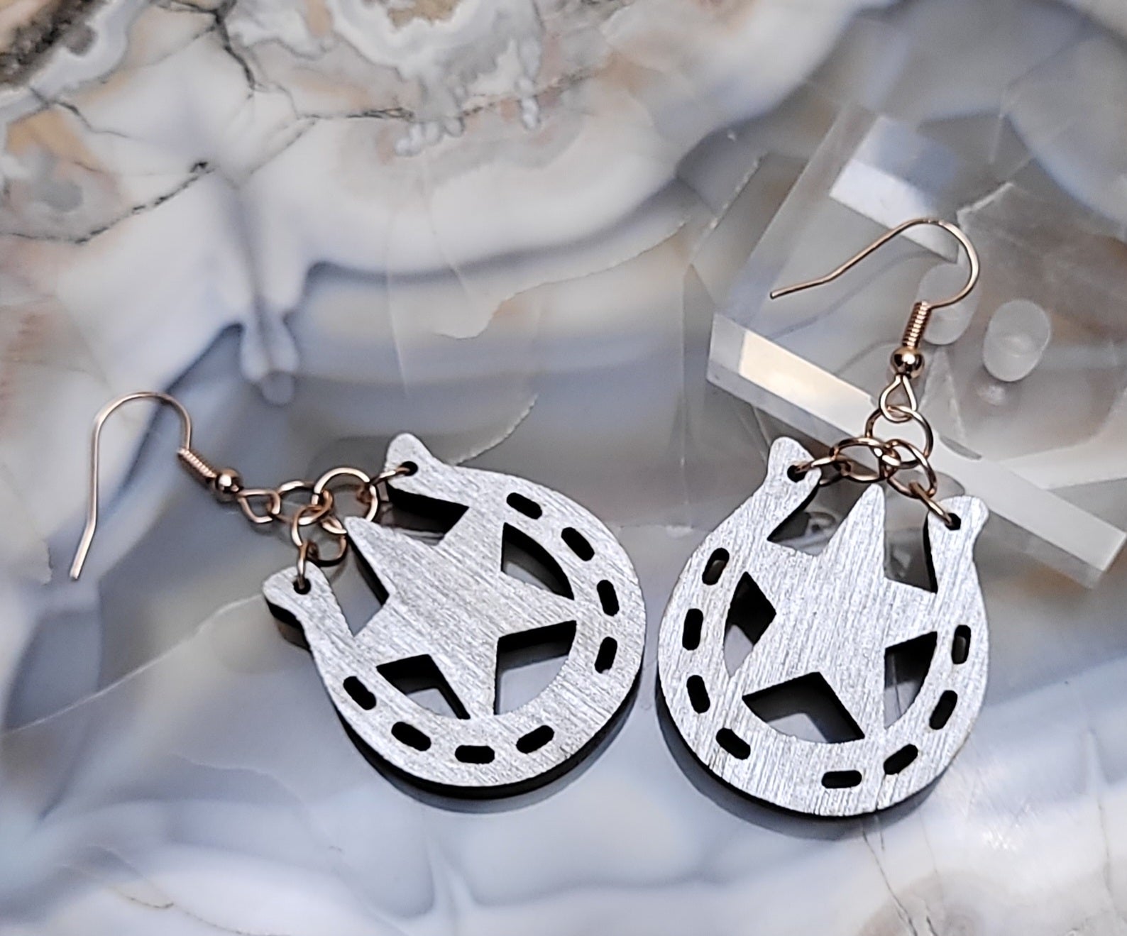 Introducing our exquisite "Silver Hoof" laser-cut wooden nickel-free earrings, a stunning choice for those seeking elegant and unique accessories. Embrace the sleek silver color and luxurious gold hook adorned with three rings, adding a touch of sophistication to your look.